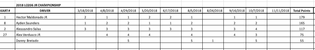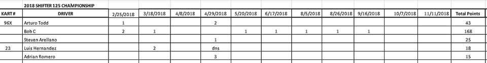 2019 Series Results Standings